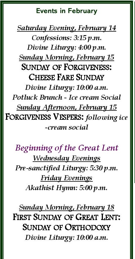 Saturday Mystery of Holy Confession 3:45 p.m. Divine Liturgy at 4:00 p.m.