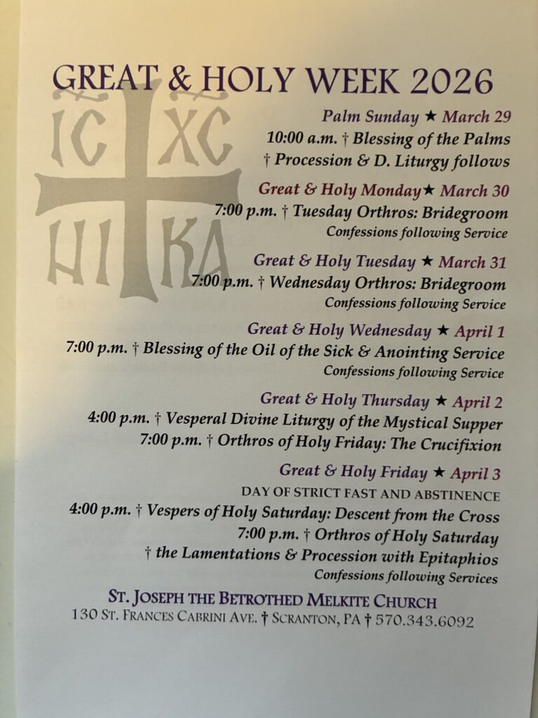 The 2025 Melkite Pastoral Appeal has been mailed to all parishioners and friends of our parish. (formerly titled the Bishop Annual Appeal) Please be as generous as you are able. Visit https://flocknote.com/melkite-pastoral-appeal/
