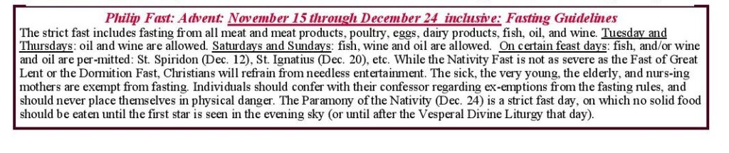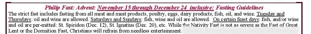 The Nativity Fast begins Nov 15 SEE DEVOTIONS PAGE FOR INFORMATION