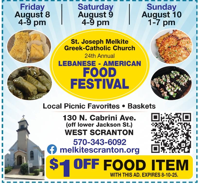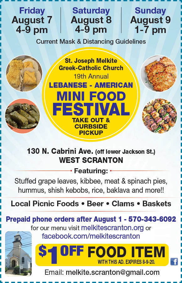 2022 FOOD FEST will be held the weekend of Fri-Sun Aug 12-14. See Aug 7 and Aug 10 Scranton Times for coupon for $1 off plus our ad. Click through on digital copy.