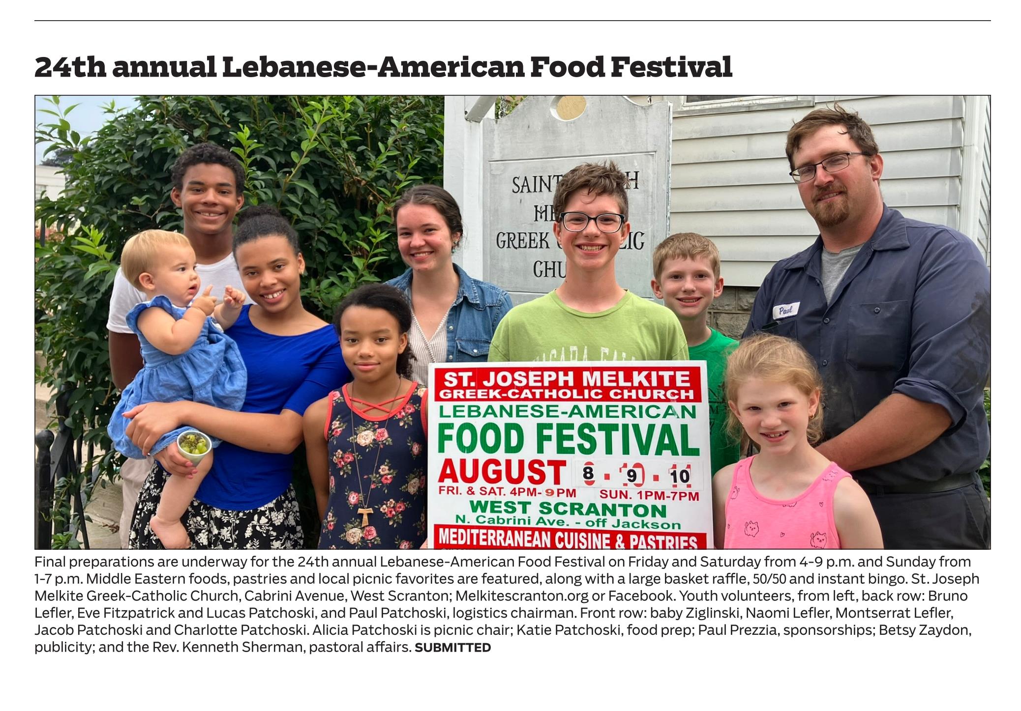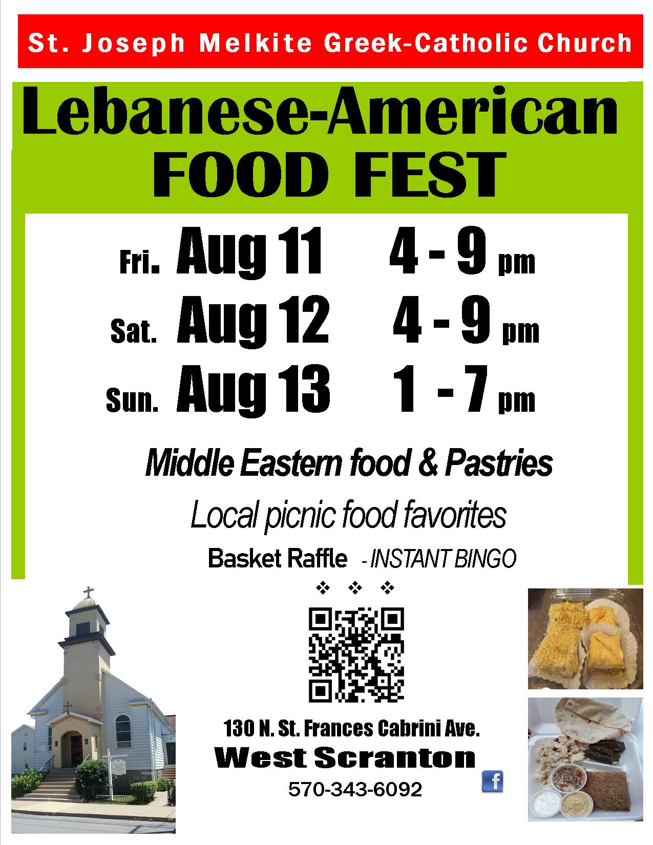 Please enter off lower Jackson St. as Cabrini is a one-way. Parking is limited, you may wish to park in the surrounding area near St. Lucy, Jackson St., Ninth Ave. or Main Ave. and walk in. Please contact melkite.scranton@gmail.com with any questions. Follow us on facebook @melkitescranton for the most up to date coverage. Be sure to support all our dedicated sponsors, whose signs will be hanging in the tented area. Or if you would like to sponsor the fest with a sign, please contact the email above to have a form sent. We would need these by the end of July to have a banner made in time. Read about our prior food festivals below on this page.