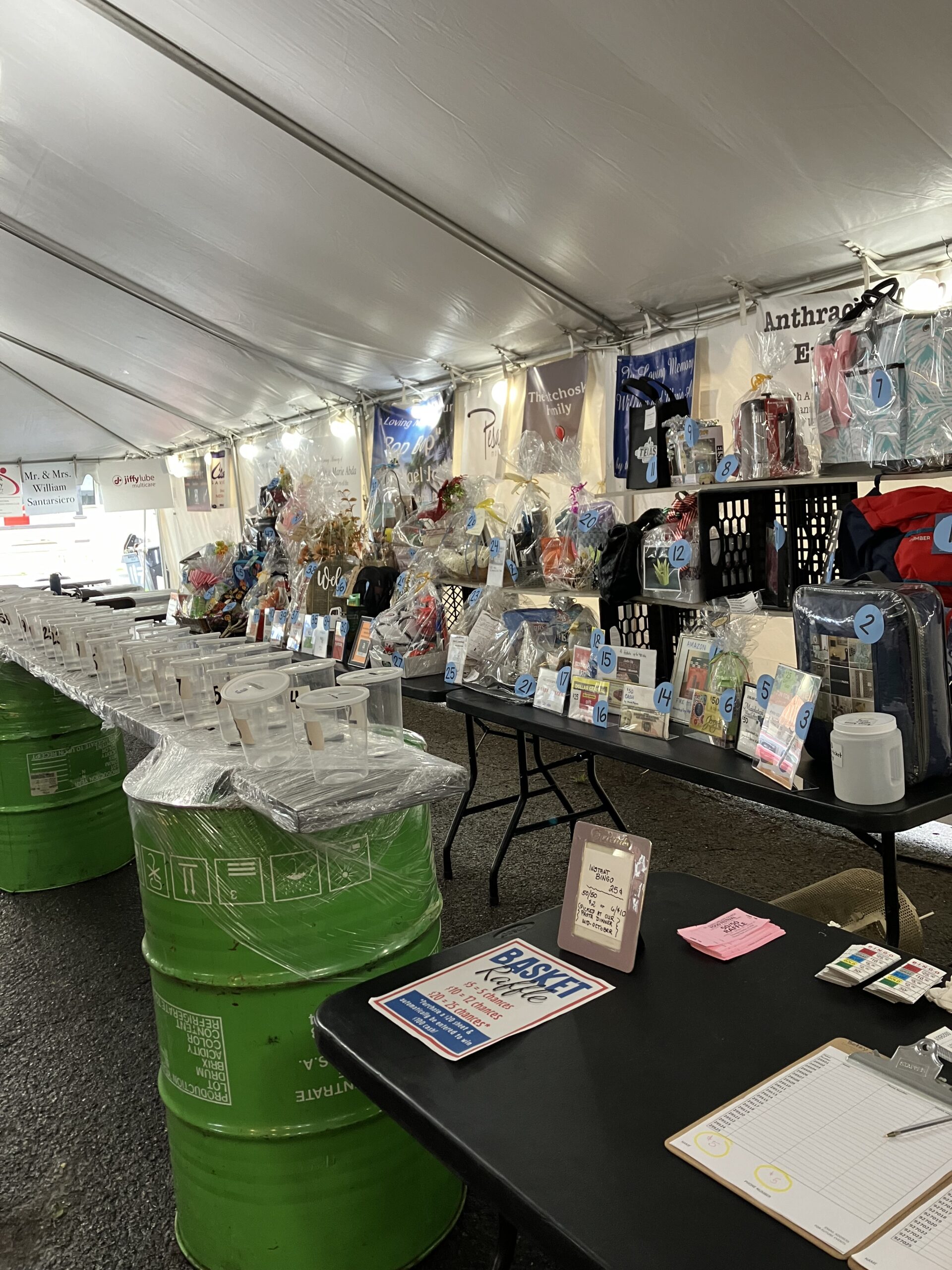 There is our great basket raffle. Last year over 55 baskets, gift cards, cash prizes. Thank you to local stores & folks for donating a basket. Instant Bingo & 50/50.