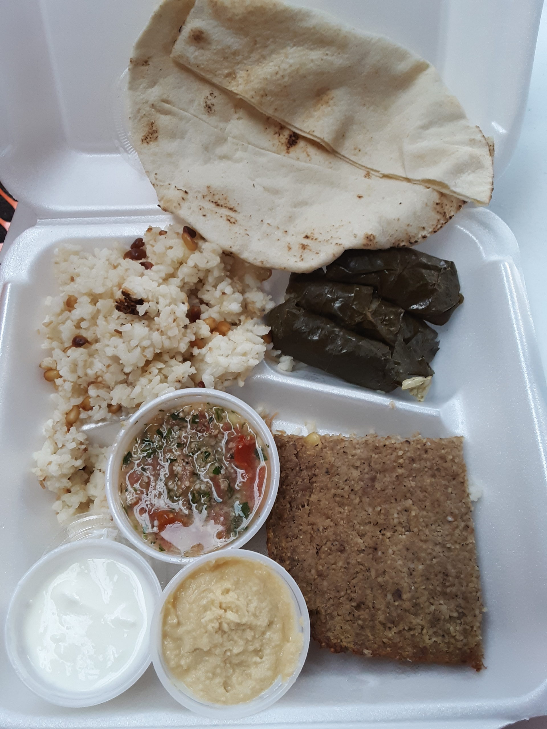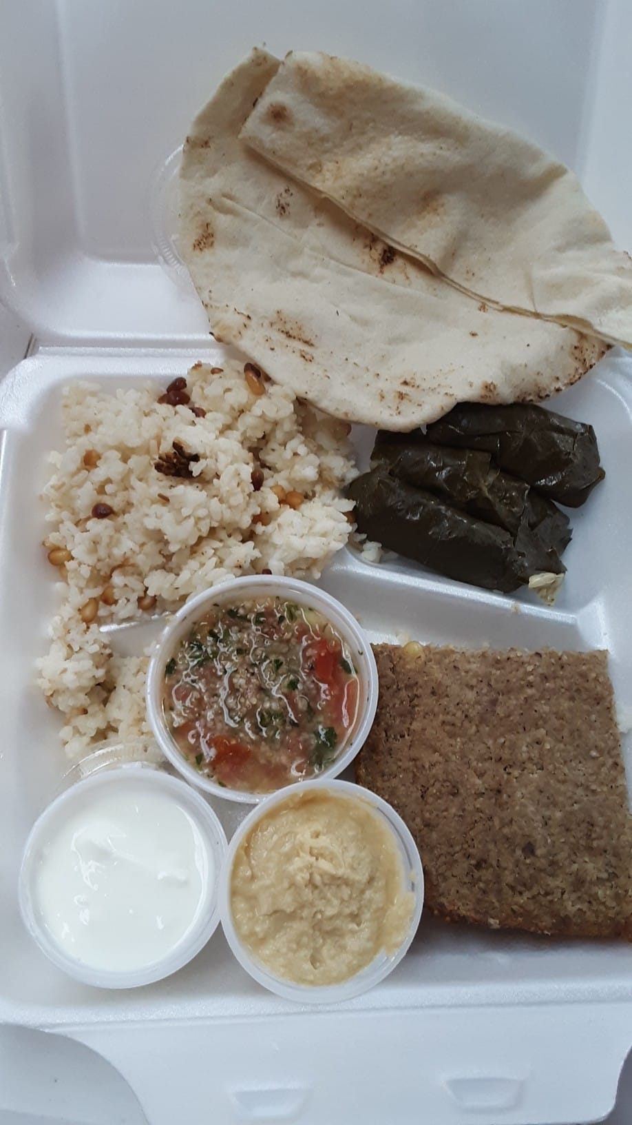 Homemade Middle Eastern foods: Kibbee, Rice, Grape Leaves, Shish Kebob-beef & chicken, Hummos, tabouli, hashweh, loubyah, spinach & meat pies. Baklawa, shredded wheat, farina, Vegetarian options available