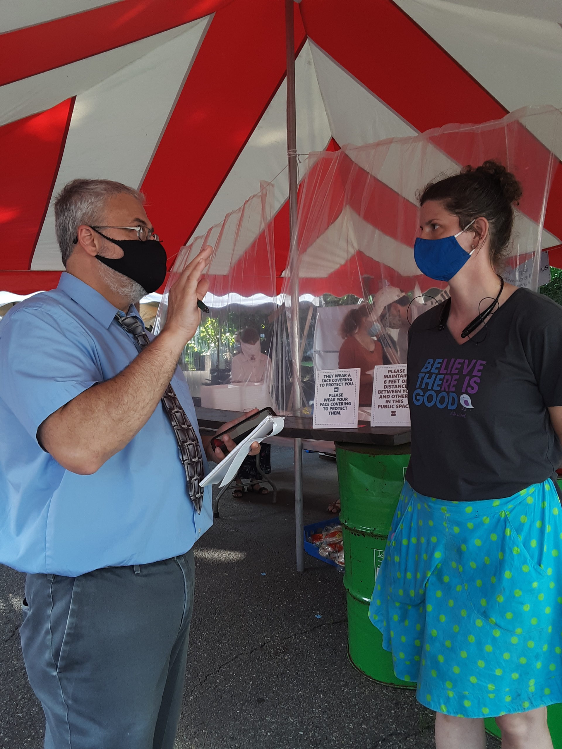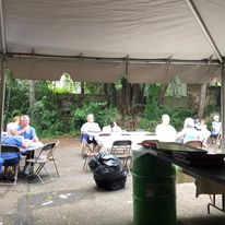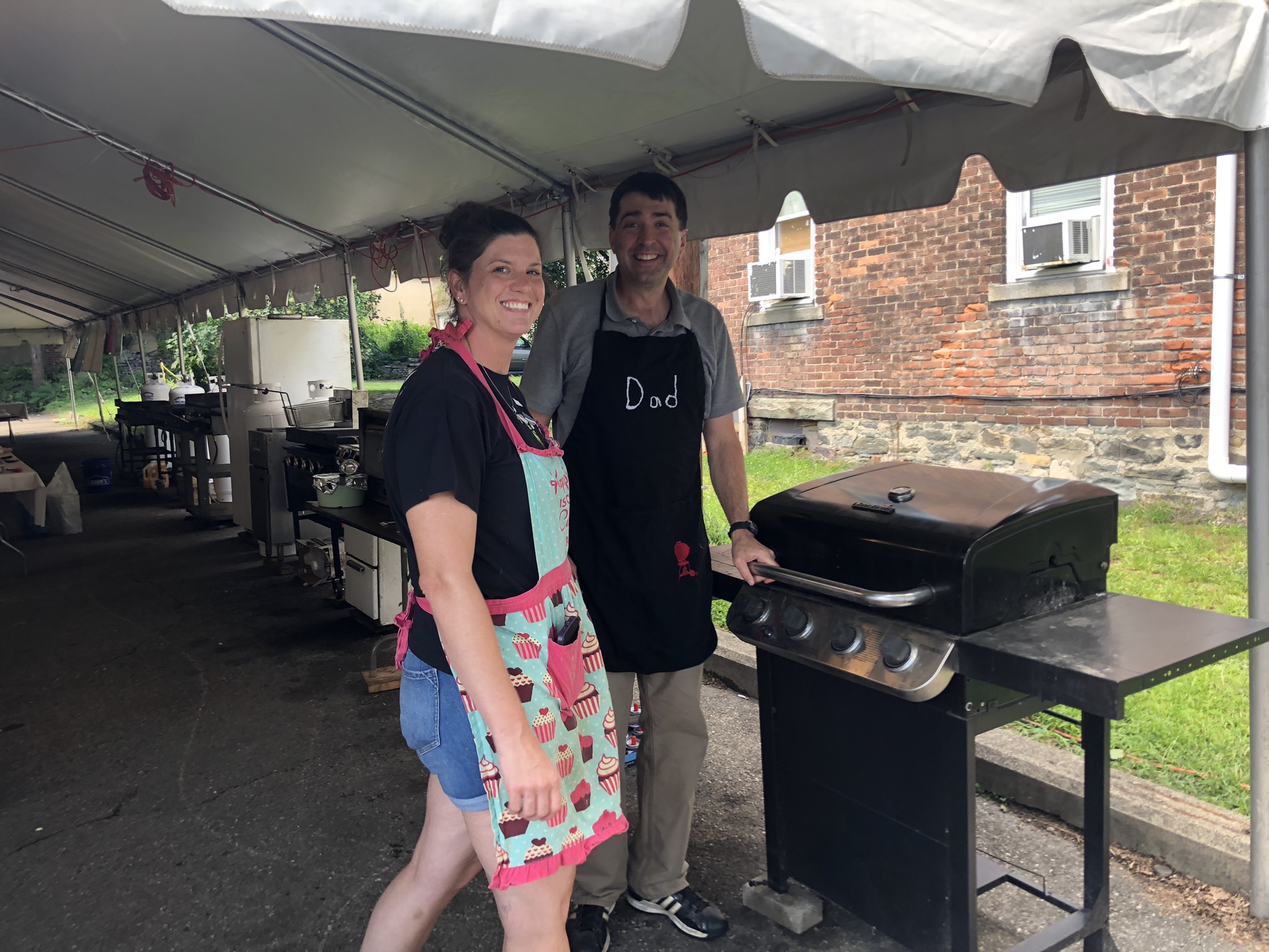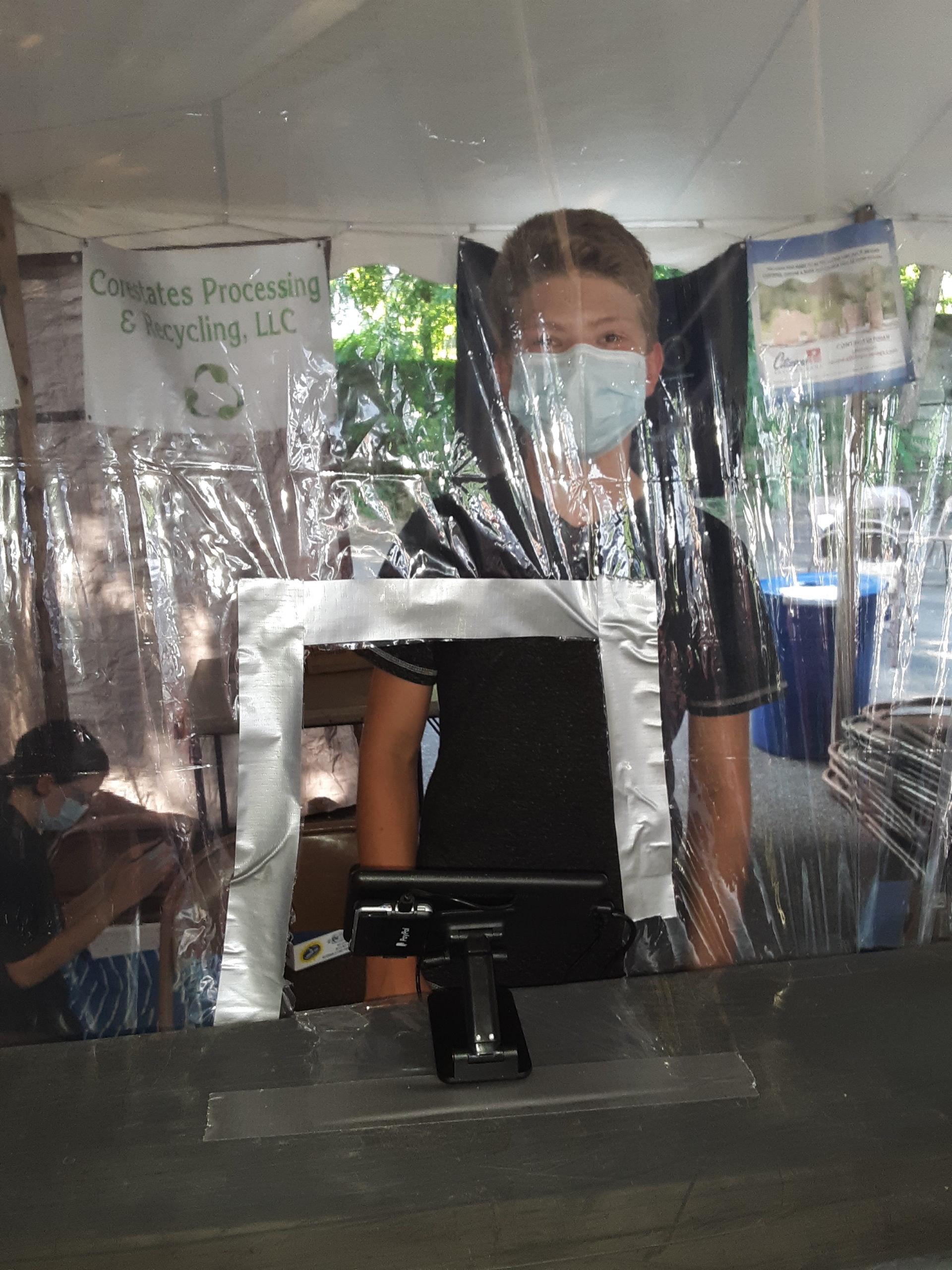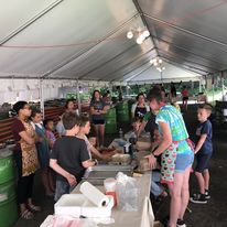 Set up is the same as last year where you come thru the line and get your items. Payment at the end either cash or credit/debit card swipe. Takeout from the line under the tented area or Limited outdoor seating.