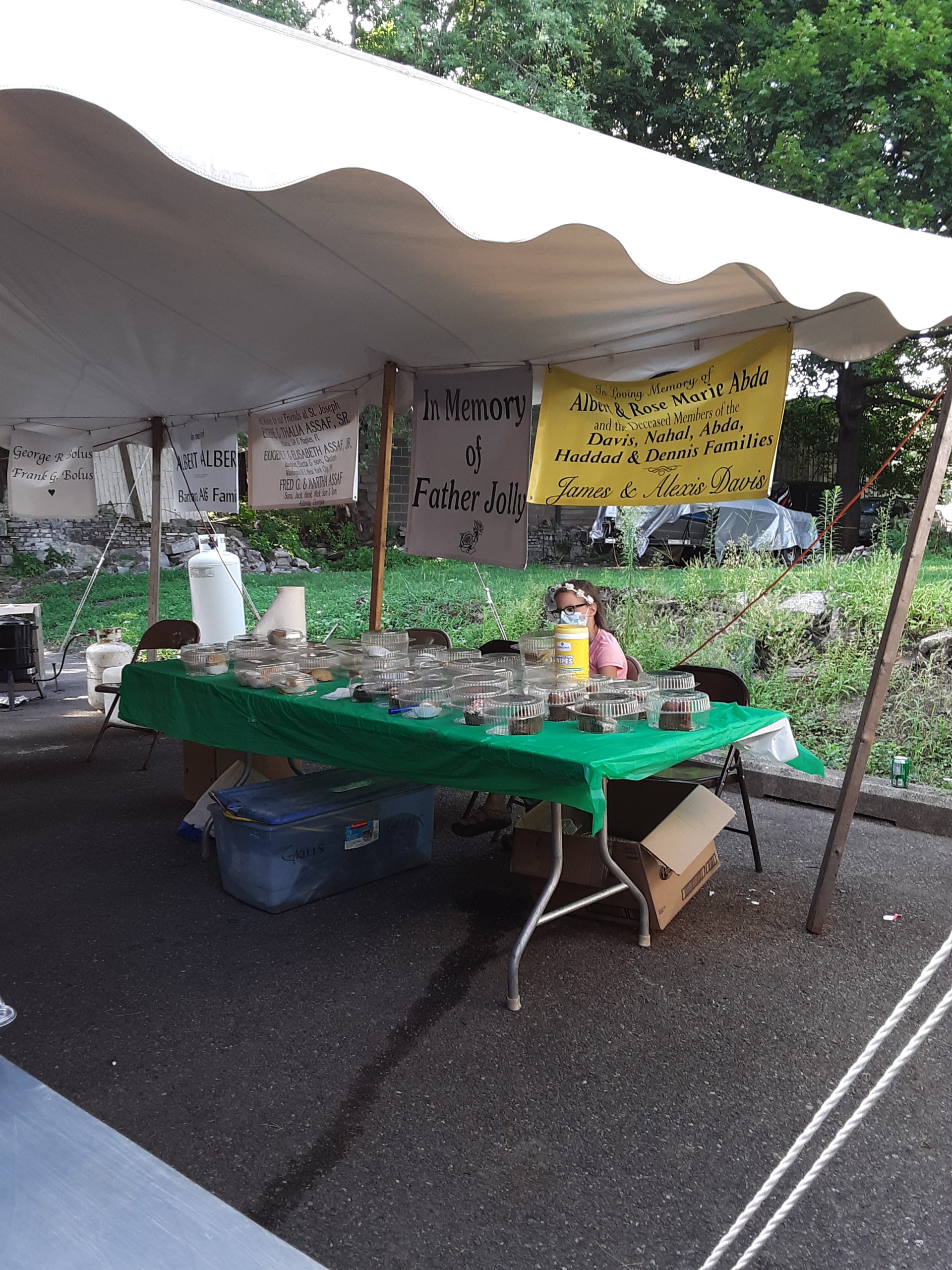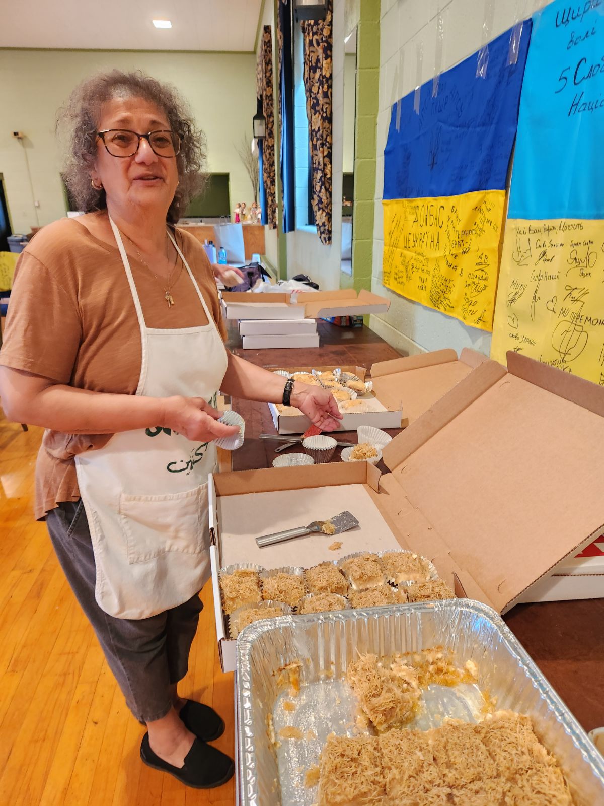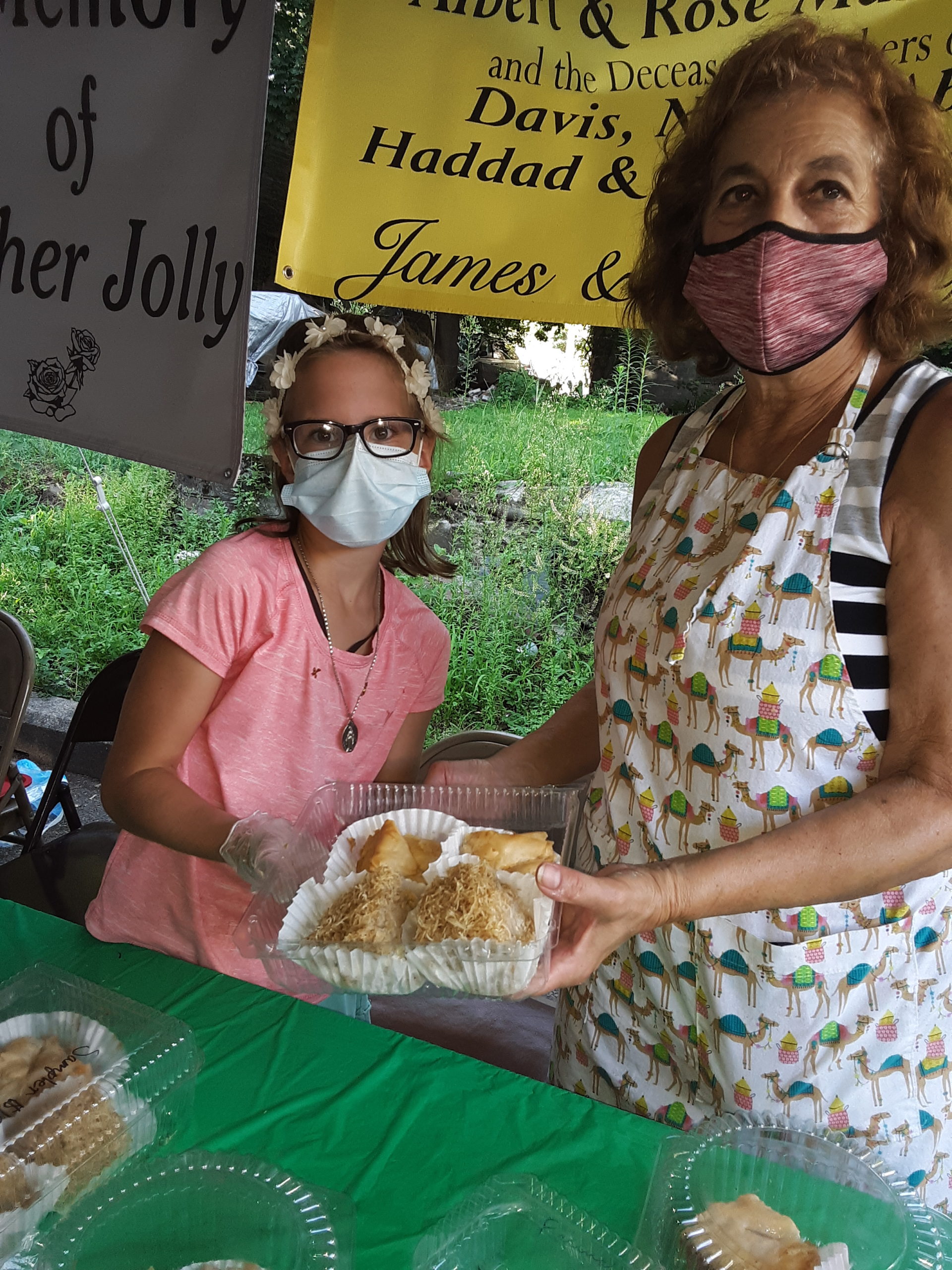 Delicious homemade Lebanese Foods: Kibbee, Stuffed Grape Leaves, Spinach & Meat Pies, Chicken Shish Kebobs, tabouli, garlic tuom, bread, etc… Pastries include baklawa, shredded wheat with cheese/nuts, farina, plus cakes, cupcakes, tandy cakes & cookies. Local picnic favorites are sausage & pepper sandwich on hard roll, potato pancakes, pizza frita, fries, burgers & hotdogs with or without chili sauce, canned beer, soda & water (no clams this year) Priced menu for above will be posted prior to event for viewing- There is no pre-order or curbside pickup. Walk through the line to get your food choices & pay at the end. Indicate whether it is take out or eat in, so it can be packaged. Tents over food prep and some tables, outdoor seating & tent over raffle tables. We prefer cash but have a card chip or swipe.