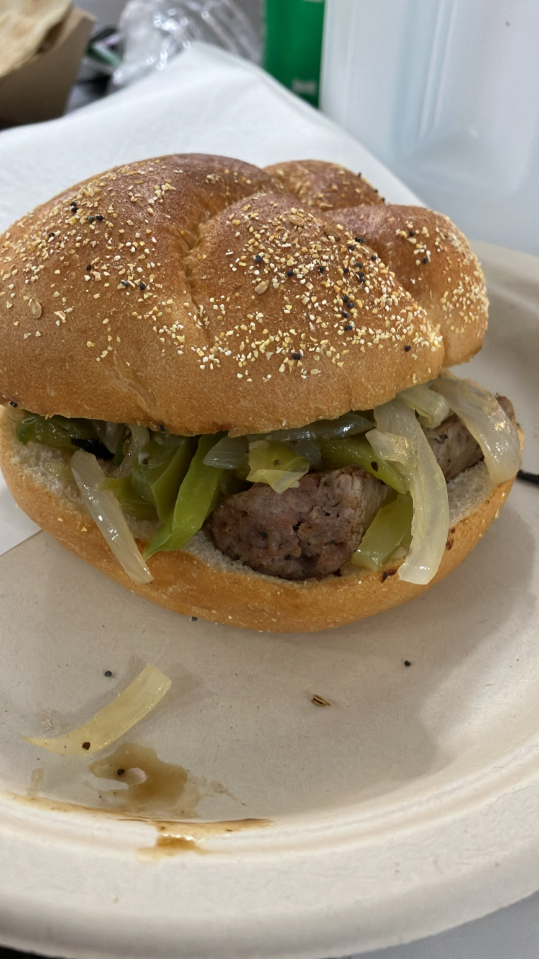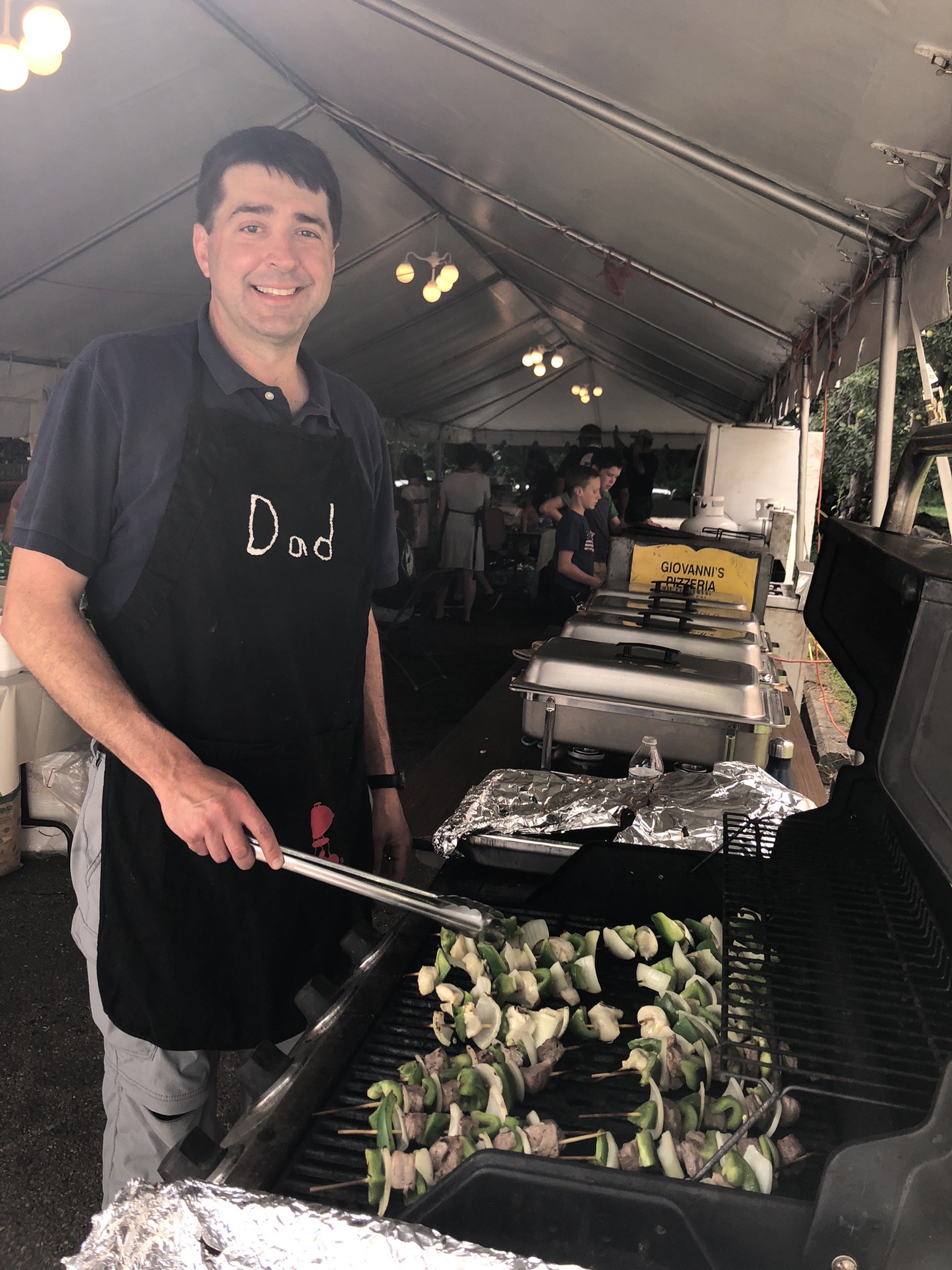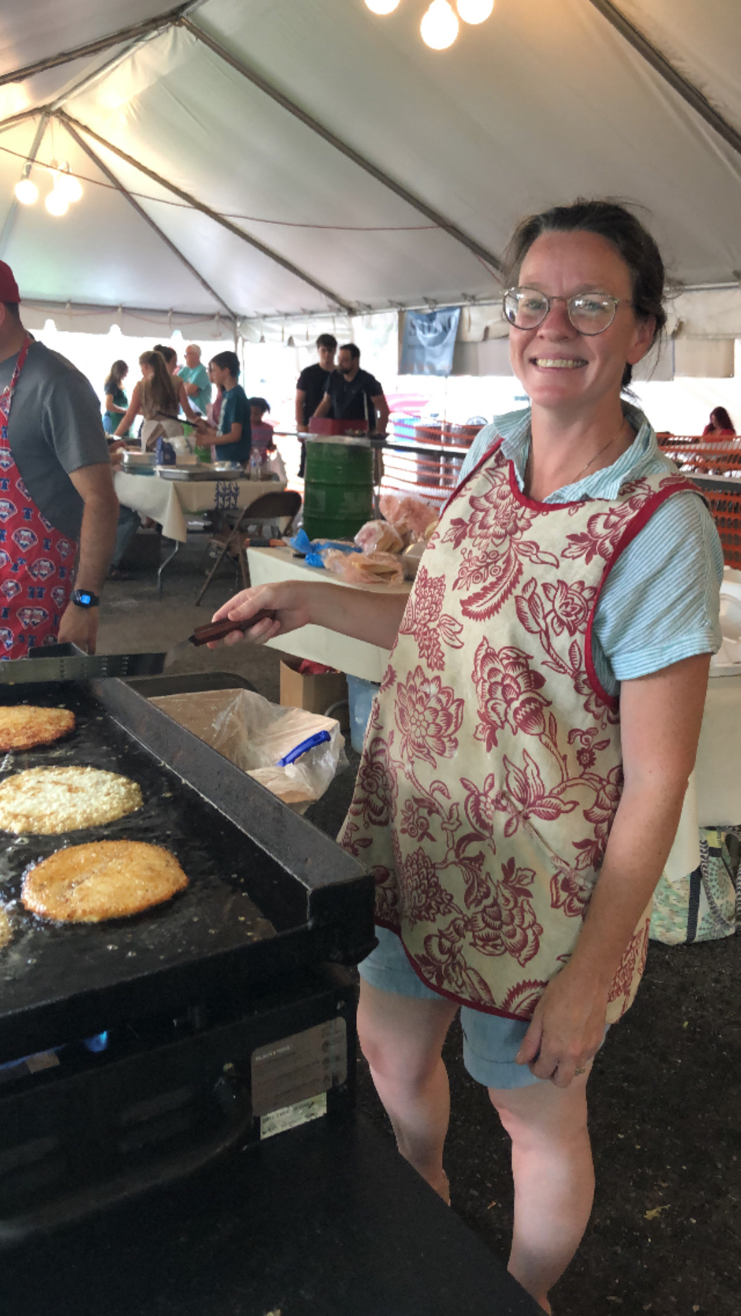 American picnic fare: potato pancakes, sausage & peppers, burgers, dogs, fries, pizza fritta, bottled soda, water & canned beer (21 & up), no clams or beer tent.